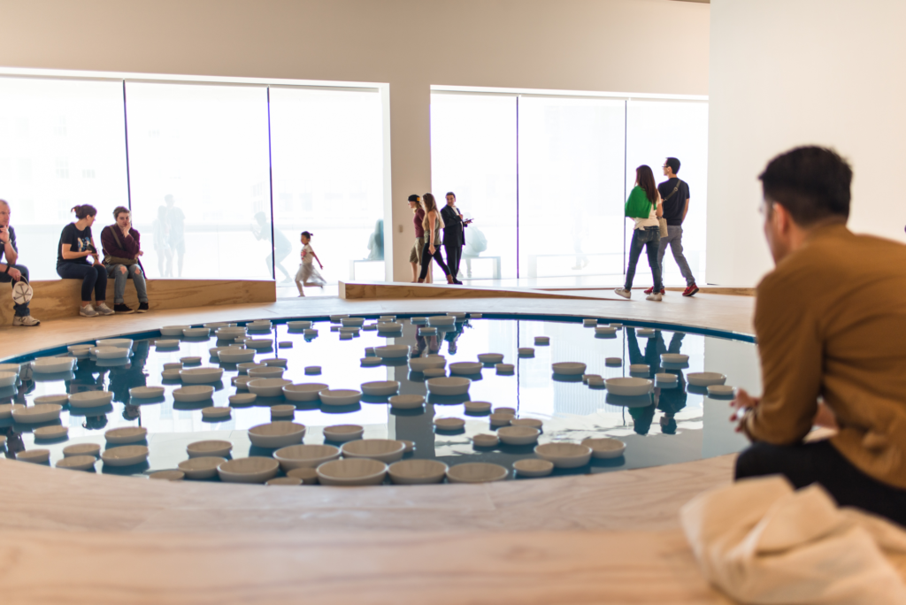 Images from top left: 1Morris Graves, Hibernation, 1954, 2Olafur Eliasson, Beauty, 1993, 3Celeste Boursier-Mougenot, Clinamen, 2012, and 4From Here to Ear, 1999
